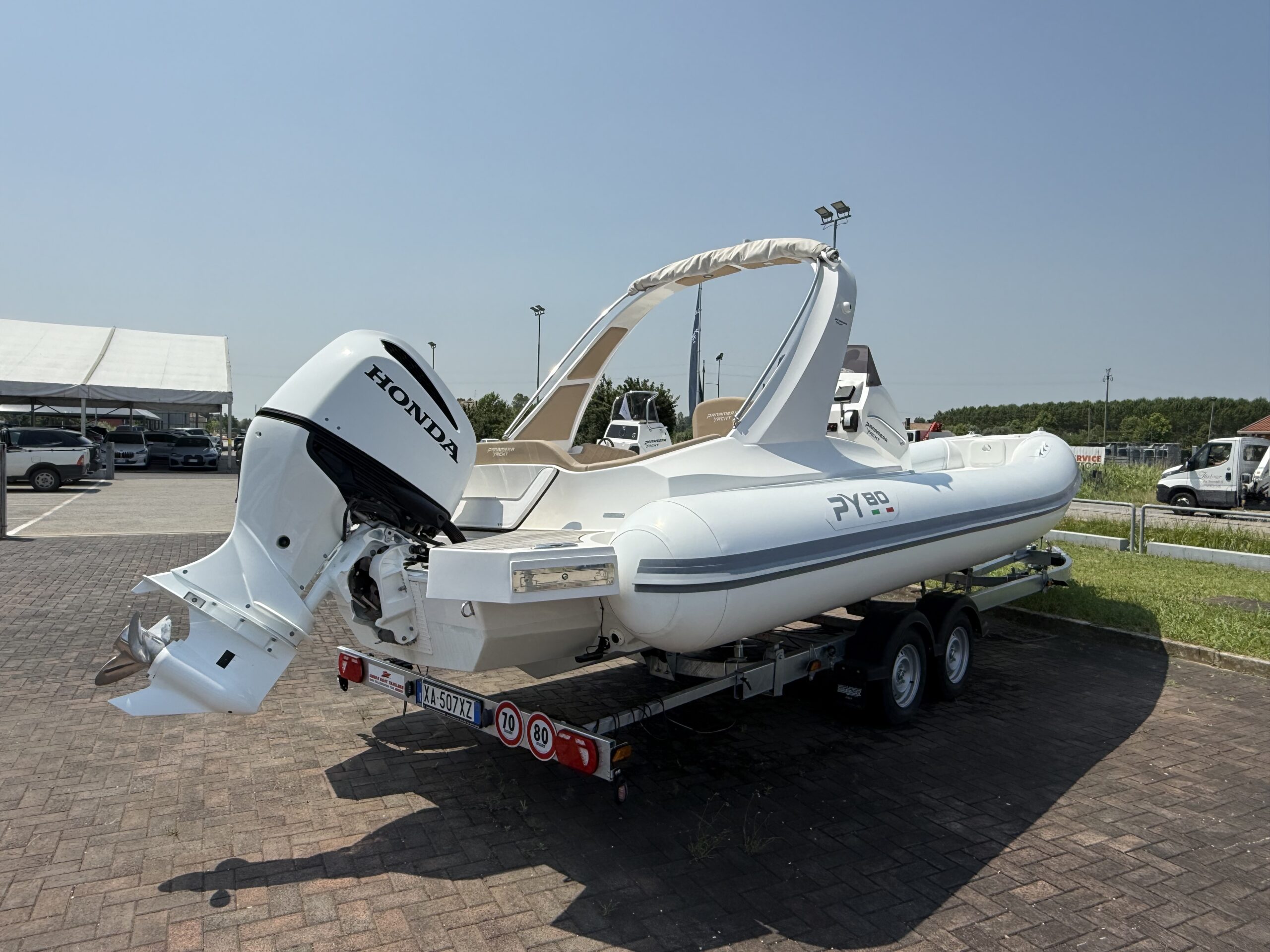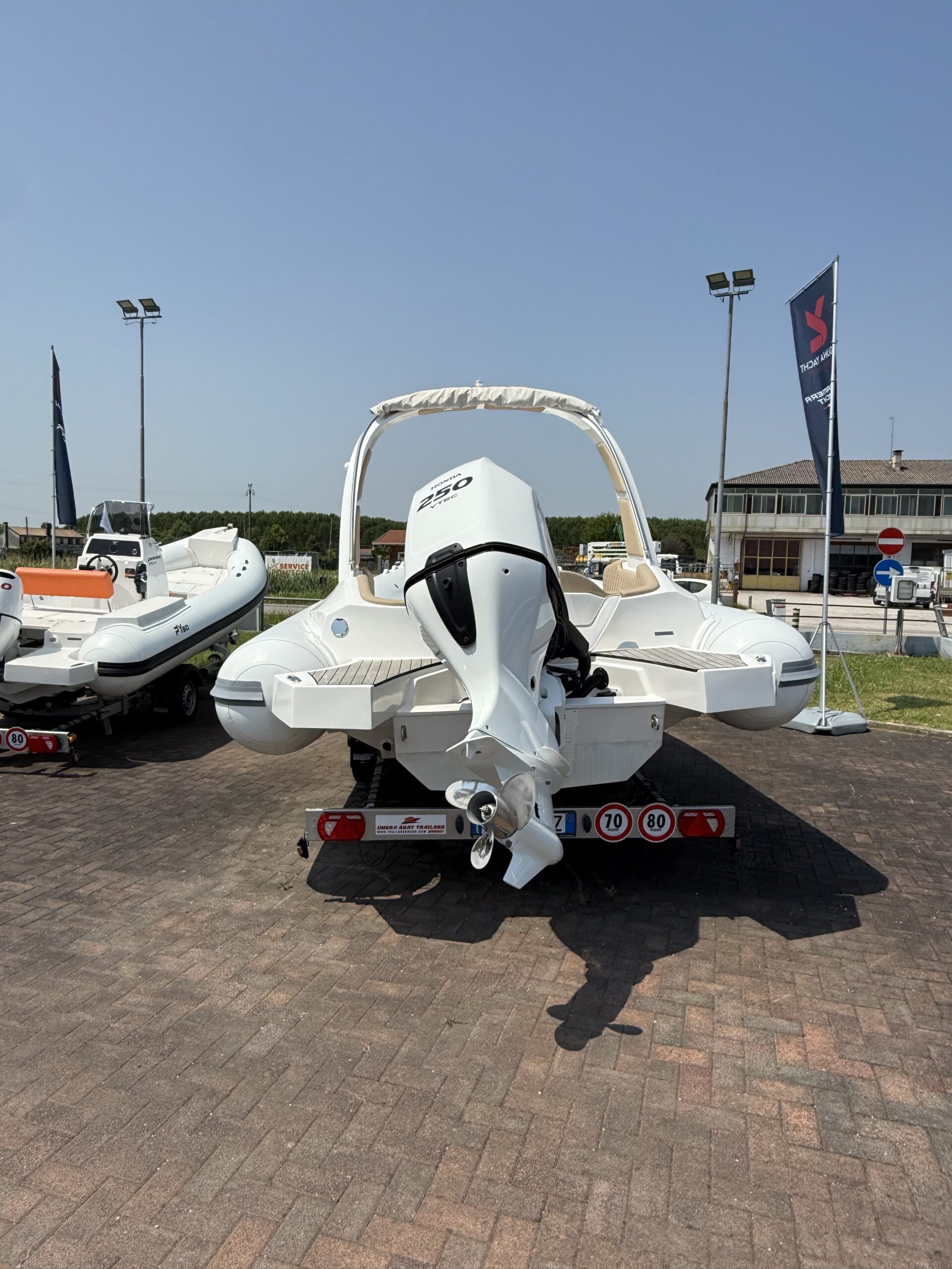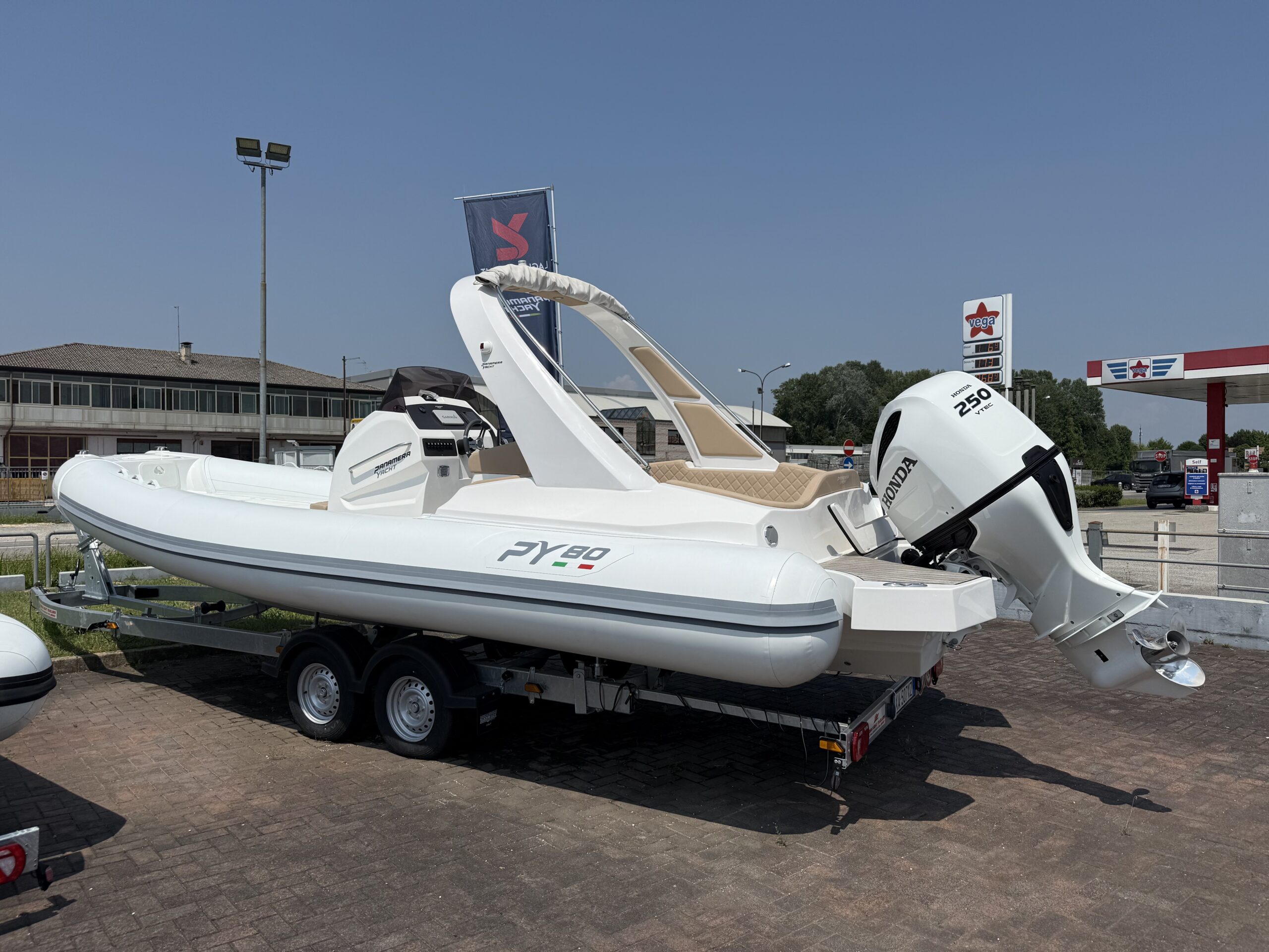 Autoclave completa, Bitte n.4 a scomparsa, Bussola alta velocità, Cuscineria personalizzabile, Doccia esterna a poppa, Impianto elettrico, Indicatore livello carburante, Lavandino con rubinetto, Luci di fonda a 360°, Luci di navigazione, Pannello interruttori, Parabrezza in plexiglass, Piano cottura a gas, Pompa di sentina a immersione, Scaletta risalita a scomparsa, Staccabatteria, Tavolo di poppa convertibile a prendisole, Tendalino parasole, Tromba a incasso, Volante.